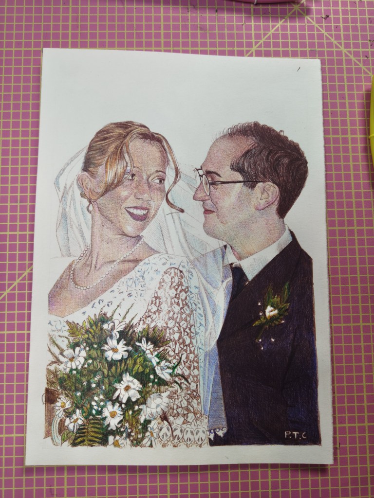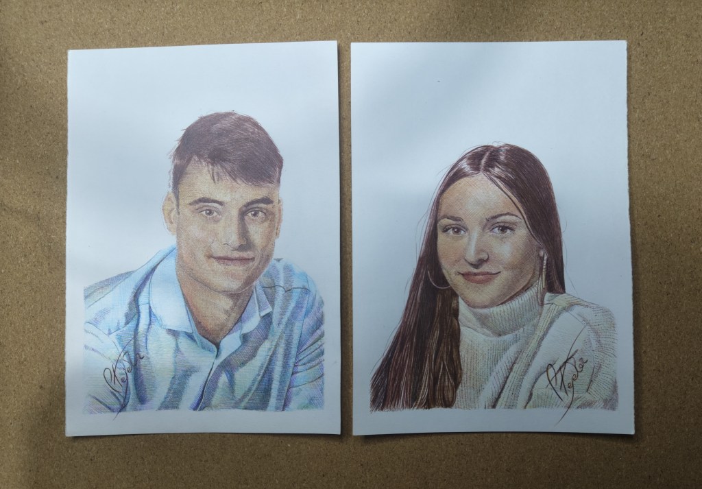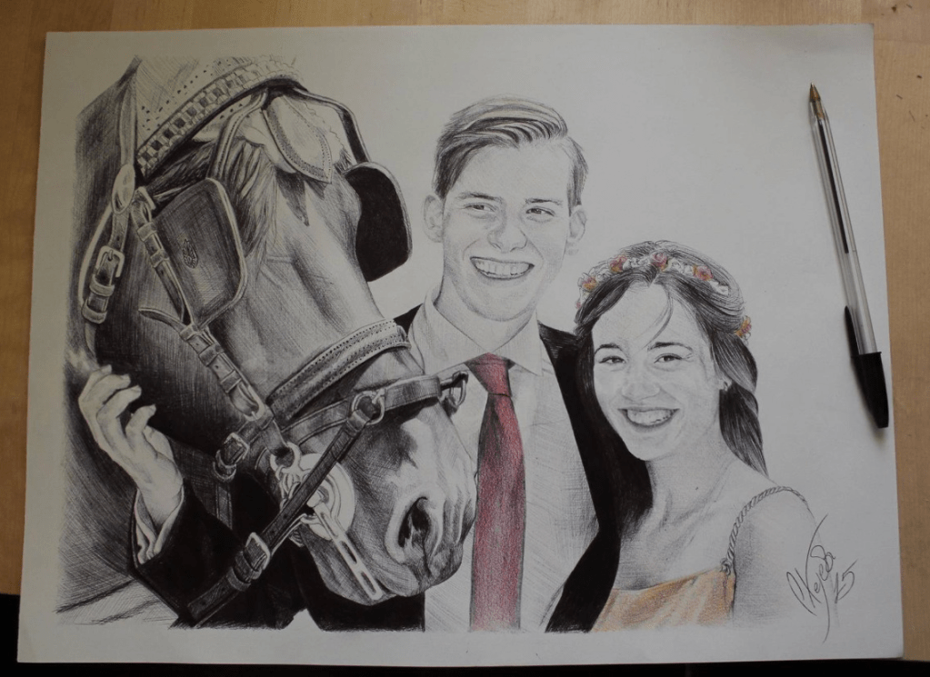 Retratos realistas a bolígrafo, elige tu color favorito, hacerlo a todo color o con detalles en acuarela. Un regalo perfecto para bodas, cumpleaños, para Navidad o para cualquier ocasión.